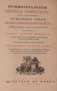 Nummophylacium reginæ Christinæ [...]. Médailles de grand et moyen bronze du cabinet de la reine Christine, frappées tant par ordre du sénat, que par les colonies romaines, et par les villes grecques La Haye, Pierre de Hondt, 1742. In-folio, demi-veau fauve avec coins, non rogné (Reliure de l'époque). Édition originale, bilingue, de ce grand ouvrage du philologue et numismate hollandais Sigebert Havercamp (1683-1742), établi d'après la précieuse collection de médailles de la reine Christine de Suède.