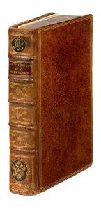 Abrégé de l'arithmétique et de la géométrie de l'officier. Paris, Alexandre Jombert, 1767. In-12, veau écaille, triple filet doré, dos orné, chiffre et armoiries dorées et mosaïquées, tranches marbrées (Reliure de l'époque). Quatrième édition, revue et corrigée, illustrée de 19 planches gravées sur cuivre par Le Parmentier, repliées en fin de volume.