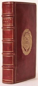 La Physique des Anciens. Paris, Jean-Baptiste Coignard, 1701. In-12, maroquin rouge, filet doré, armoiries au centre, dos orné d'un filet doré, dentelle intérieure, tranches dorées (Reliure de l'époque). Édition originale de ce rare et curieux ouvrage de physique empreint d'alchimie, dû à Dominique Révérend (1645-1754).