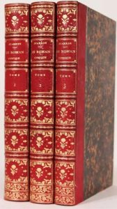 Le Roman comique. Paris, Janet, Hubert, l'an quatrième [1796]. 3 volumes grand in-8, demi-maroquin rouge, dos orné, tête dorée, non rogné (Reliure du XIXe siècle). Nouvelle édition, sortie des presses de Didot jeune et ornée d'un portrait de l'auteur gravé par Le Mire et de 15 figures hors texte de Le Barbier gravées par Baquoy, Dambrun, Duclos, Hubert, Patas, Petit, Romanet et Simonet.