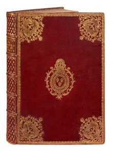 On y retrouve les fers de l'atelier de Guillaume Mercier, relieur de la bibliothèque du roi de 1721 à 1762 (reproduits dans Métivier).
