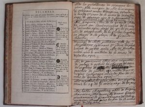 pour l'an 1721. Paris, Laurent d'Houry, 1721. In-8, veau fauve, filets à froid, dos orné de fleurs de lis dorées, tranches mouchetées (Reliure de l'époque). Très intéressant almanach au calendrier interfolié, contenant de nombreuses pages de notes passionnantes d'un contemporain, lequel commente la grave crise financière des années 1720, les naissances, décès et autres événements d'une Cour royale où la Régence prend fin cette année-là.