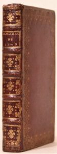 année 1746. Paris, Veuve d'Houry et Le Breton, 1746. In-8, maroquin rouge, dentelle dorée en encadrement, dos orné de fleurs de lis dorées, doublure et gardes de papier d'Augsbourg, tranches dorées (Reliure de l'époque). Élégant exemplaire en maroquin rouge au calendrier interfolié.