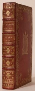 année 1770. Paris, Le Breton, 1770. In-8, maroquin rouge, large dentelle dorée, armoiries au centre, dos orné, doublure et gardes de papier d'Augsbourg, tranches dorées (Reliure de l'époque). Superbe exemplaire de maroquin rouge aux armes du maréchal Gaspard de Clermont-Tonnerre (1688-1781). Marquis de Cruzy et de Vauvillers, il est élevé au rang de duc en 1775 à l'occasion du sacre de Louis XVI, durant lequel il a le rôle de tenir l'épée de Charlemagne en tant que doyen des maréchaux de France.