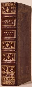 année bissextile 1784. Paris, d'Houry, 1784. In-8, maroquin rouge, large dentelle droite dorée et fleurons aux angles, dos orné de fleurs de lis dorées, tranches dorées (Reliure de l'époque). Élégant exemplaire relié en maroquin rouge.