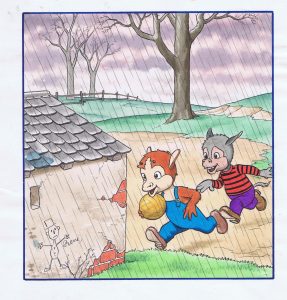 MOREAU. « Roudoudou ». Gouache couleurs sur papier pour la couverture d’un numéro de ROUDOUDOU LES BELLES IMAGES. Années 50. Format 22 x 27 cm.