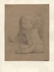 Putto assis ; et Putto agenouillé. Contre-épreuve de craie noire sur papier brun. Le premier avec signature ‘hallé’ à la plume et encre noire, en bas à droite. 28,5 x 22,3 cm et 28,5 x 14,6 cm, deux dessins. Les originaux de ces deux contre-épreuve ne sont pas connus.