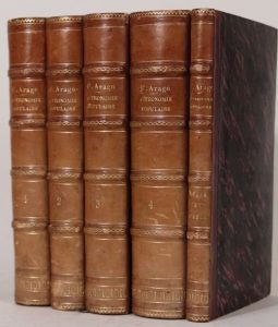 Astronomie populaire. Paris, Gide et J. Baudry ; Leipzig, T. O. Weigel, 1854-1857. 5 volumes in-8, dont un de planches, demi-basane, dos orné (Reliure de l'époque). Cet ouvrage classique d'astronomie a été publié sous l'ordre d'Arago, secrétaire perpétuel de l'Académie des Sciences, sous la direction de J.- A. Barral.