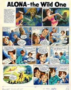 OTWAY Leslie. Alona Planche à l’encre de Chine noire et aquarelle pour Alona – The wild one parue dans le magazine Princess Tina en janvier 1968. Format : 38 x 53 cm.