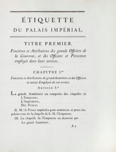 Elle détaille le rôle et les attributions de chacun des officiers, le lever et le coucher de l'empereur et de l'impératrice, le service du Grand Couvert, du Petit Couvert, des déjeuners, les bals et concerts, les grandes parades, les voyages, etc. Son principal rédacteur est Louis-Philippe de Ségur, d'après Barbier.