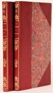 GAUTIER (Théophile). Omphale. Histoire rococo. Paris, A. Ferroud, 1896. – FLORIAN (Jean-Pierre Claris de). Kédar et Améla. Ibid., 1901. 2 volumes in-12, demi-maroquin rouge avec coins, dos lisse orné, tête dorée, non rogné, couverture (Durvand). Omphale est orné d'eaux-fortes in et hors texte d'Adolphe Lalauze ; Kédar et Améla, de 10 compositions en couleurs de Léon Fauret.