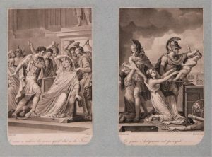 Album de gravures. S.l.n.d. [XIXe siècle]. In-4 oblong, bradel percaline verte (Reliure de l'époque). Important album de gravures contrecollées sur papier fort de couleur : illustrations des XVIIe, XVIIIe et XIXe siècles, gravures de portraits, vues, sujets variés, monnaies, lettrines, etc.