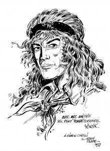 PAAPE Eddy. Yorik des Tempêtes Encre de Chine noire pour un portrait de Yorik. Dédicacé et signé à Simon Chelli. Format : 19,2 x 27,7 cm.