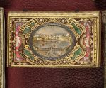 au centre grand médaillon ovale à cadre d’argent laissant voir deux vues de Compigné, doublure de tabis avec miroir et poche portefeuille, tranches dorées (Reliure de l’époque).