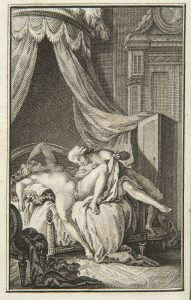 Édition imprimée sur papier bleuté, ornée de 15 figures libres gravées sur cuivre par Elluin d’après des dessins de Borel.