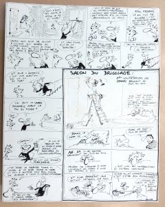 REISER. Salon du Bricolage.Encre de Chine sur papier épais pour une planche parue dans CHARLIE HEBDO. Format 32,5 x 41 cm. Signé.