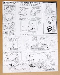 REISER. La pénurie n’est pas forcément triste. Encre de Chine sur papier épais pour une planche de CHARLIE HEBDO. Format 32,5 x 41 cm. Signée.