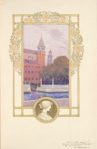 Exemplaire offert par Carteret à Arthur Meyer, directeur du journal Le Gaulois, qui porte son emblème au dos. Il est enrichi de 2 AQUARELLES ORIGINALES, l’une de Robaudi, l’autre de Giraldon, toutes deux à lui dédicacées, et d’un poème autographe de Paul Bourget.