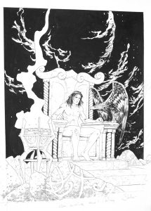 STALNER Eric. Malheig Deux études de la couverture de l’album LE SOUFFLE DU DRAGON, l’une à la mine de plomb et l’autre encrée. Format : 32,5 x 50 cm. Signées.