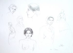 STALNER Eric. Le fer et le feu Mine plomb pour des recherche sur le personnage de Clémence. Format : 42 x 29,7 cm. Signé.