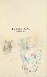 MONTORGUEIL (Georges). — La Parisienne peinte par elle-même. — Paris, L. Conquet, 1897. — In-8, maroquin bleu marine, janséniste, encadrement intérieur orné de jeux de filets, doublure et gardes de soie brochée grise, tranches dorées sur...