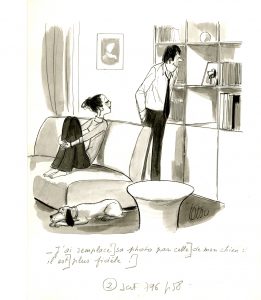 TESTU. Jours de France Illustration au lavis pour le magazine JOURS DE FRANCE. Signé. 25 x 32,7 cm.