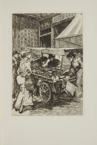 RICHEPIN (Jean). — Les Petits gagne-pain parisiens. — Paris, pour Jean Borderel, 1927. — Fort volume petit in-4, maroquin bleu nuit, janséniste, jeux de filets intérieurs avec fleuron aux angles, tranches dorées sur témoins, couverture et...