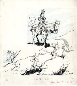 TRUBERT Jean. Franc jeu Encre de chine noire pour une illustration parue dans le magazine FRANC JEU n°403. Signé. Format : 27,8 x 30,7 cm.