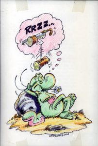 WIDENLOCHER Roger. Nab Encre de Chine noire pour une illustration pour une sérigraphie éditée par l’association Shanti Bhavan avec ses indications couleurs. Signé. Format : 16,8 x 24,9 cm.