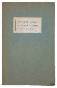 (De SMET) — PAUL-GUSTAVE VAN HECKE, — Fraîcheur de Paris.— Avec cinq dessins hors texte et seize ornements par Gustave De Smet. — Bruxelles, Éditions Séléction, s.d. In-8°. 39 pp.num. Tir. lim. et num. à la presse, un des 200 ex. sur...