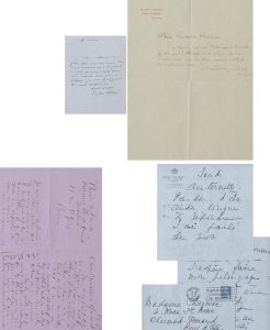 • Lettres autographes de l'acteur suisse Michel Simon (1895-1975) ; du dramaturge français Eugène Labiche (1815-1888) et de l'actrice française Arletty (Léonie Bathiat 1898-1992).
