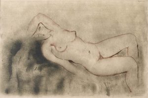 FLORIS JESPERS (1889-1965) — Liggend naakt. — Monotype. — Getekend in inkt 'Floris Jespers'. — In kader. — 350 x 540 mm (530 x 725 mm)