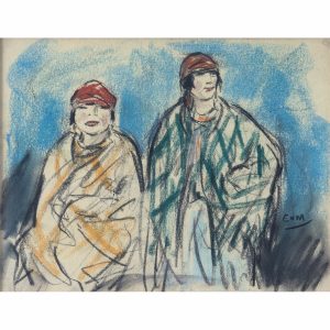 EUGEEN VAN MIEGHEM (1875-1930) — Filles. — Fusain et craie de couleurs. — Monogrammé. — Encadré. 200 x 260 mm (410 x 423 mm)