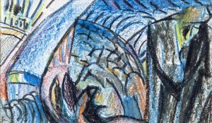 FRANZ VAN MONTFORT (1889-1980) — 'La fin du jour', 1917. Crayon de couleurs. Daté et signé au crayon noir au verso '1917/ F Van Montfort'. Encadré. 130 x 220 mm (335 x 430 mm