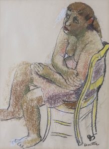 JULES DE SUTTER (1895-1970) — Demi-nu assis sur une chaise. — Monogrammé 'DS' et signé 'De Sutter'. — Encadré. 350 x 260 mm (700 x 600 mm)