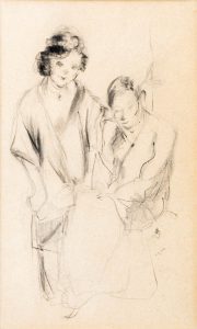 HENRI VAN STRATEN (1892-1944) — Couple. — Crayon. — Monogrammé 'V Str'.— Esquisse pour une zincographie ? — Encadré. — 280 x 180 mm (410 x 310 mm)