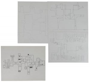 CEL OVERBERGHE (°1937) — Sans titre, 1957. — Lot de quatre dessins. — Encre de Chine. — Signés et datés. — 220 x 300 (x3)/ 245 x 320 mm