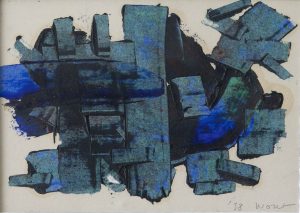 Olie en gouache op papier. Gedateerd en getekend in potlood '58 wout'.