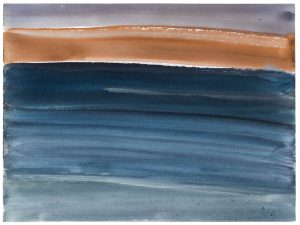 Aquarel. Getekend in zwarte inkt 'Mortier'.