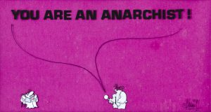RAOUL SERVAIS (°1928) — 'You are an anarchist', 1970. — Encre sur celluloid.— Signé 'Servais'. Sous passe-partout. — Encadré. — 145 x 275 mm (405 x 505 mm)