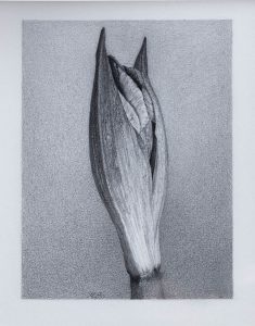 MICHEL BUYLEN (°1953) — Feuille en bouton. — Dessin au crayon. — Monogram 'M.B.'. — Encadré. — 165 x 125 mm (480 x 415 mm)