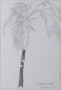 DAVID LAMELAS (°1946) — 'Antwerp palm', 1991. — Dessin au crayon gris et bleu. — Signé et daté à la mine de plomb 'David Lamelas 1991', titré. — Encadré. — — 700 x 480 mm (1025 x 720 mm)