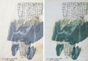 WERNER MANNAERS (°1954) — 'Paysage/St.-Denis de Pile', 2002. — Encre, gouache. — Signé et daté avec cachet. ─ On joint : • litho en couleurs avec ce dessin, monogrammé et numéroté 1/1. — Encadrés. — 295 x 210 mm; 605 x 435 mm...