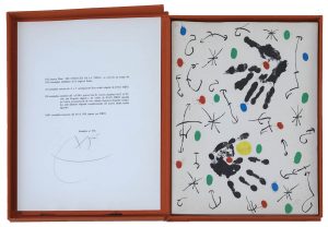 JOAN MIRO (1893-1983) — 'Les essències de la Terra' (1968). — Ediciones Poligrafa, Barcelona. — Portfolio contenant 15 lithographies dont quatre en couleurs. — Un des 1000 ex. num. à la presse, nr. 938. — Signé à la mine de plomb par...