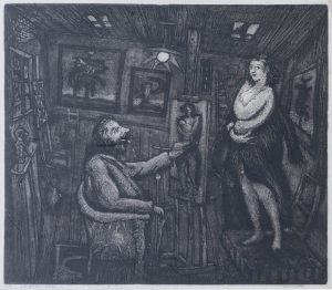 FRED BERVOETS (°1942) — 'La belle Hélène'. — Ets, aquatinte. — Signée à la mine de plomb 'Bervoets', titrée et avec annotation 'Ep'. — Encadrée. — 315 x 360 mm (530 x 585 mm)