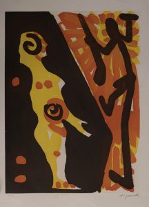 Kleurenaquatint. Getekend in potlood 'ar. penck', genummerd 36/50 en eigenhandig getiteld.