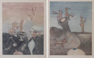 ROBERTO MATTA (1911-2002) — Sans titre. — Un lot de deux eaux-fortes en couleurs, monogrammées et numérotées (par une autre main). — Encadrées. — 470 × 370 mm (×2) (690 × 570 mm (×2))