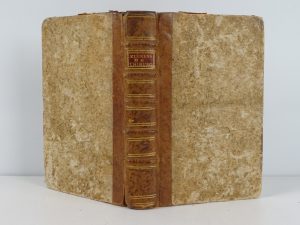 17-18, très fine galerie de ver aux 3 premiers feuillets - Reliure de l’époque demi-basane havane (plats frottés, coins et coupes usés, fente partielle au 2nd mors) - Dos à nerfs orné de filets - Pièce de titre maroquin bordeaux - Tranches rouges - Bon intérieur de cet ouvrage imprimé sur vergé teinté de bleu.