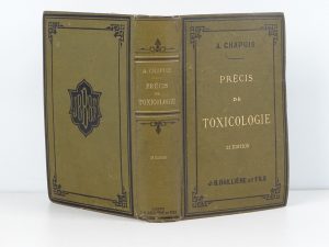 CHAPUIS (Docteur A.) - Précis de toxicologie - Paris ; Librairie J.-B. Baillière et fils, 1889 - 1 fort volume In-12° en grande partie non coupé - VIII, 770 pages, catalogue éditeur in fine - Des rousseurs - 54 figures gravées in texte -...
