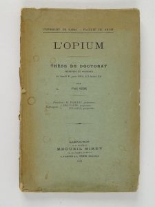 GIDE (Paul) - L’opium. Thèse de doctorat […] - Paris ; Librairie de la Société du Recueil Sirey, L. Larose & L. Tenin, 1910 - 1 volume In-8° broché (dos fendu avec manques, couverture tachée avec manques angulaires) -148 pages Des...